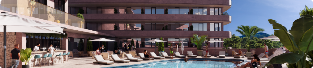 Площадь территории проекта составляет 15 гектаров, при площади застройки всего 7 гектаров, мы получаем масштабные прилегающие территории, утопающие в тропической зелени. Уютные прогулочные зоны, парки и ландшафтный дизайн в целом создают атмосферу уединенной роскоши и спокойствия.